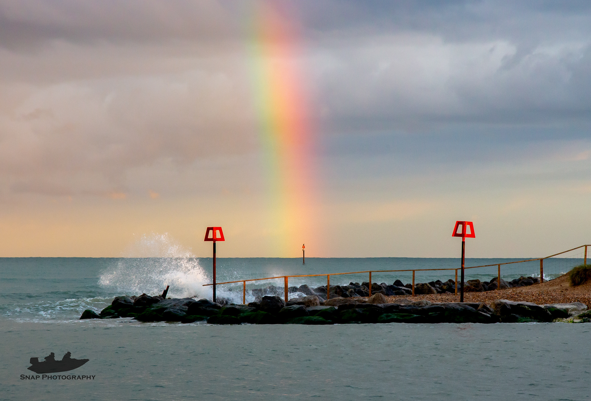 A huge double rainbow across Mudeford quay and sandbank